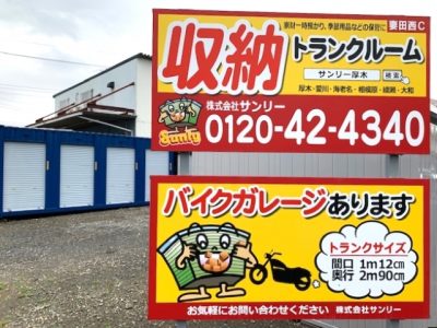 屋外トランクルーム バイク駐輪場満室御礼。神奈川県厚木市でバイクガレージ・バイク収納・バイクコンテナをお探しなら、株式会社サンリーが運営する「厚木妻田西C」へどうぞ。最寄駅は小田急線本厚木駅。24時間利用可能、屋外型の2タイプ。